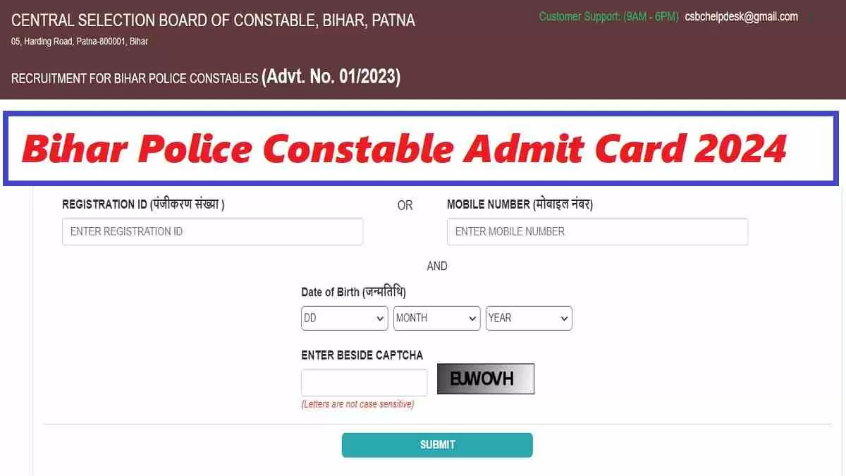 CSBC Bihar Police Constable Admit Card 2024 for 21391 Post